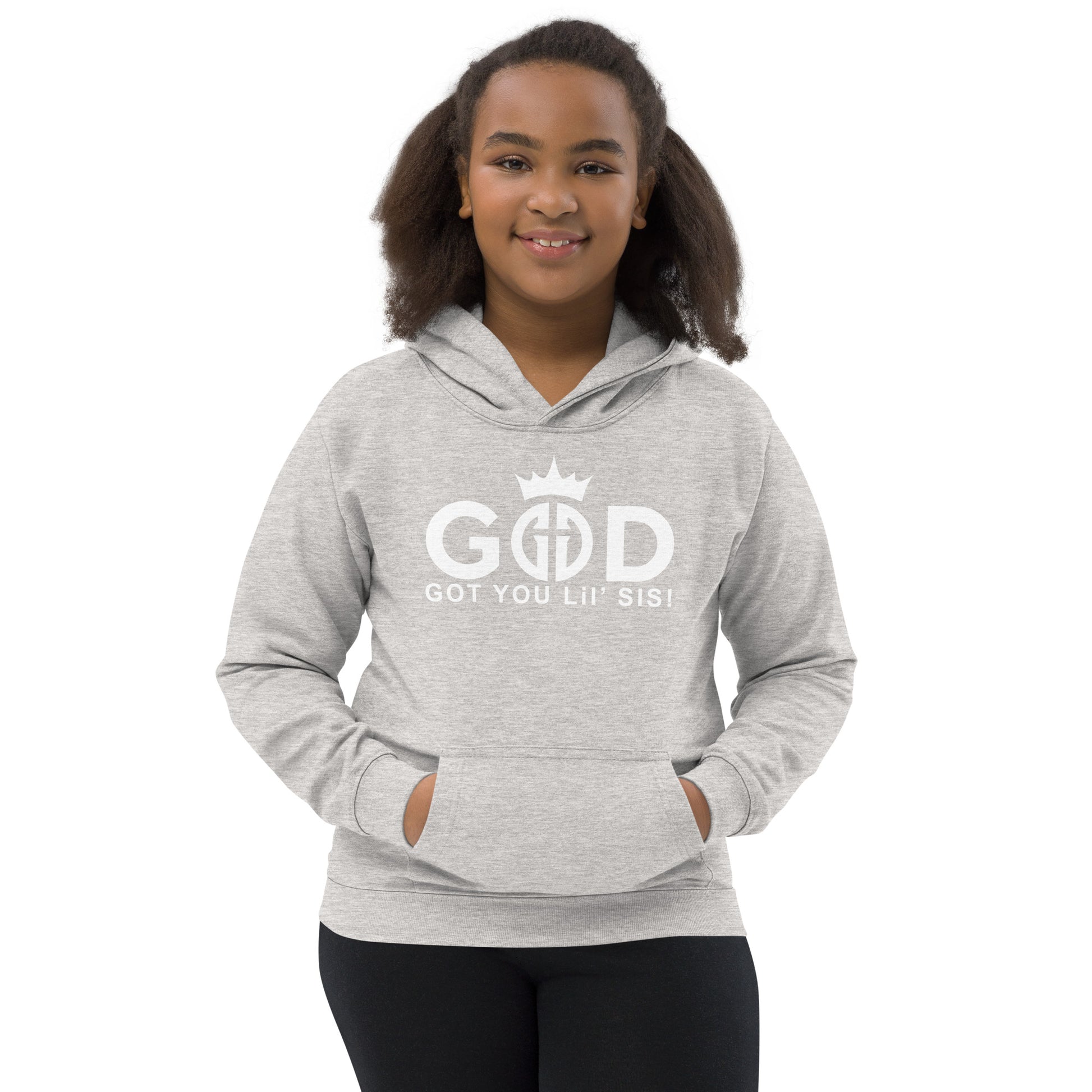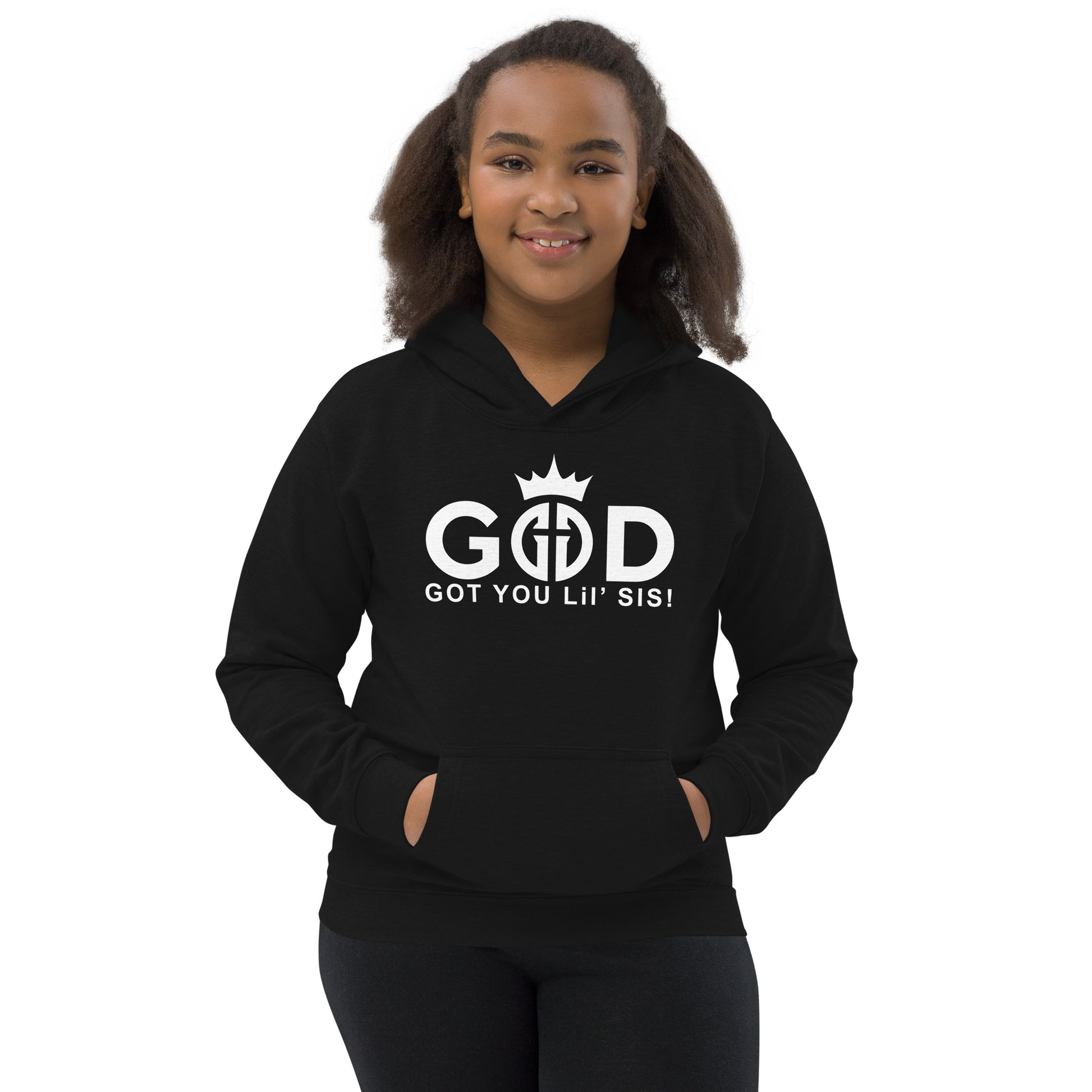 Your kid wants to be comfortable, warm, stylish, and sporty? That’s not possible… unless you opt for the God Got You Lil' Sis! Hoodie. Now, your little has the ability to look and feel good. Everyone wants to be cozy and warm and still look stylish—kids are no exception. Prepare the little one for any chilly evening by ordering this kids’ hoodie. It has a front kangaroo pouch pocket, which has a small hidden opening for an earphone cord and double fabric hood for extra warmth. What’s more, to ensure the kids' safety, the hoodie comes with no drawcords.